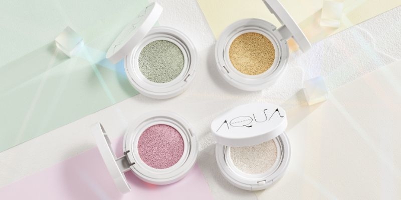 アクア・アクアのコントロールカラーベースはクッションタイプ。フルーツエキスや植物オイルなどの保湿成分がたっぷりクッションに含まれており、メイクをしながらスキンケアをするように肌に潤いを与えます。