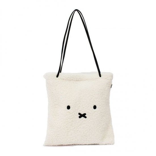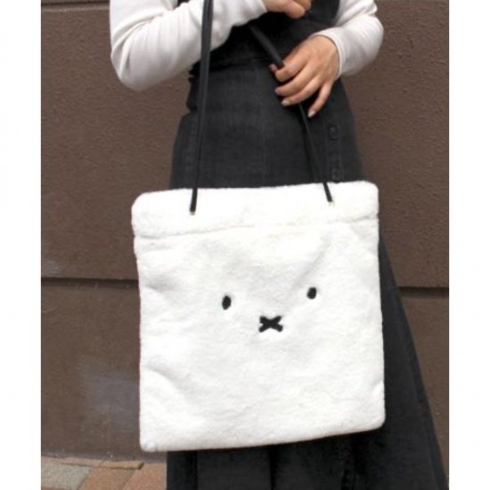 既にメロメロの方、落ち着いてくださいね♪ミッフィーのお顔がデザインされたおなじみのフェイスシリーズから、ファー素材のトートバッグが登場しました。