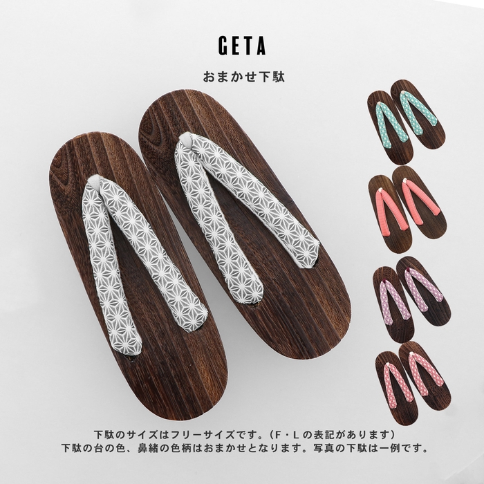 これらの浴衣と半幅帯/兵児帯をメインに、S/F/TL/LLサイズは浴衣+帯2点セット、浴衣+帯+下駄の3点セットの他、浴衣+帯+下駄をご用意中。さらに、インナーや着付け小物も入った8点フルセットも後日リリースを予定しております。