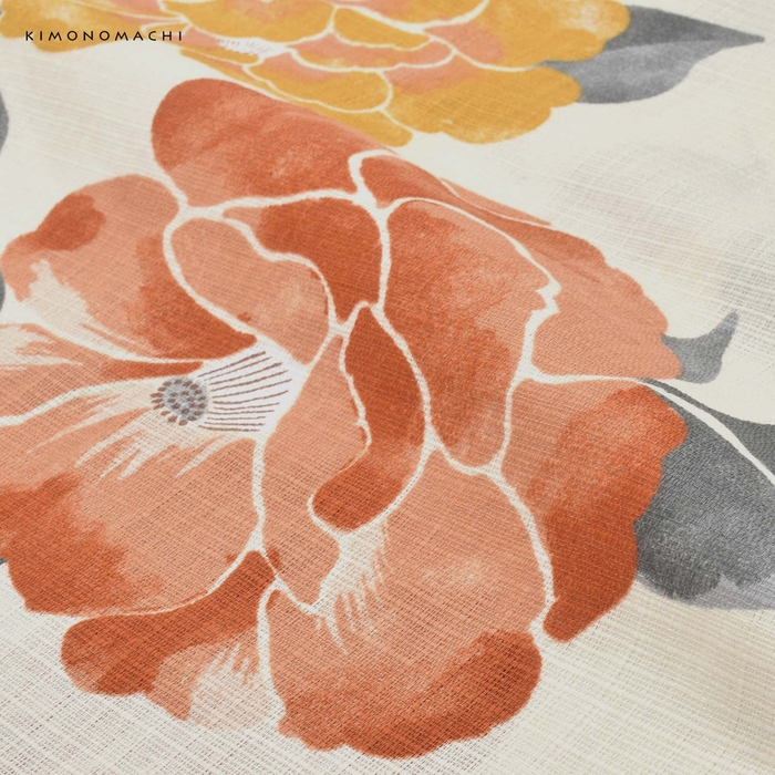 素材は綿100%、変わり紅梅織りのしっかりした生地です。ざっくりとした麻のような触り心地が特徴で、夏の暑い時期にも肌につかず涼し気に着こなせます。S/F/TL/LLに加え、3L/4Lも取りそろえた豊富なサイズ展開もうれしいポイント。低身長さんやふくよかさんなどフリーサイズの浴衣では合わない方にも着こなしていただけます。