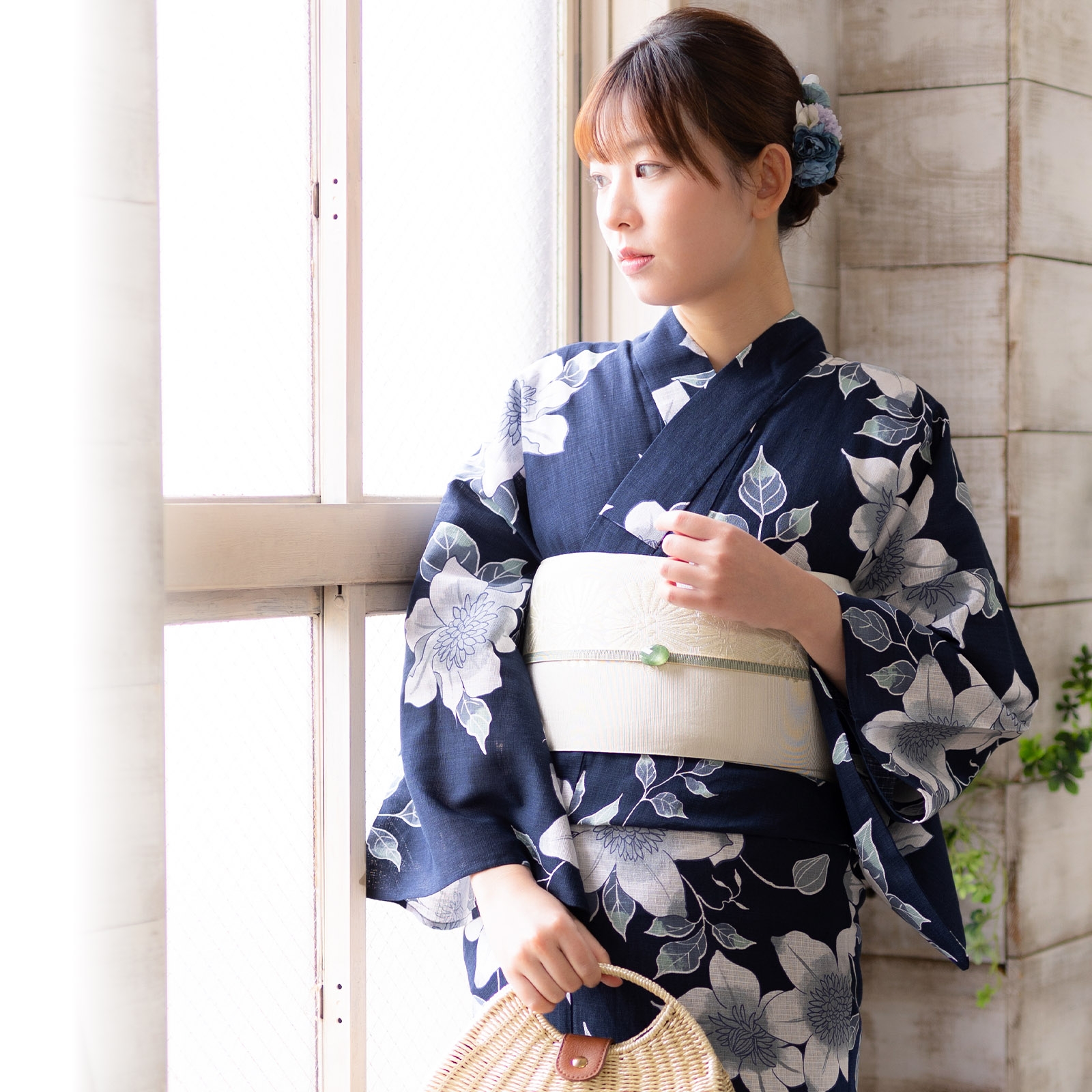 大人の女性に美しく着こなしていただける浴衣のデザインとして、気品あるクレマチスの花をモチーフにしました。