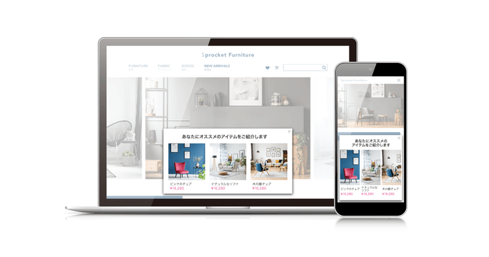 例えば「商品を閲覧したが購入には至らなかったユーザーが再訪した際、ランディングページ上で、以前閲覧していた商品に関係するレコメンドをポップアップで表示する」といった具合に、ユーザーのこれまでの行動にもとづいた提案を容易に行えます。