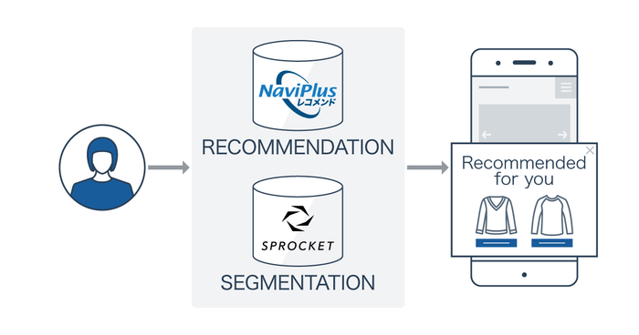 NaviPlusレコメンド連携オプションは、NaviPlusレコメンドとSprocketをご利用のお客さまであれば、すぐにご利用を開始していただけます。利用開始時に初回の設定を行った後、「どのようなセグメントのユーザーにどのようなコンテンツを表示するか」は、Sprocketの管理画面からお客さまが自由に変更可能です。