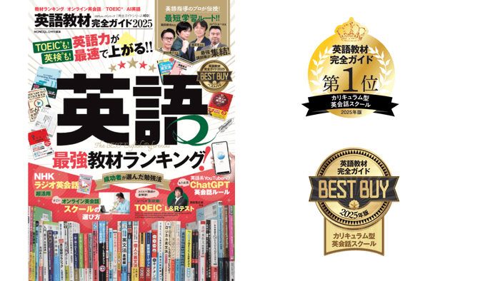 株式会社QQEnglish(本社:東京都渋谷区、代表取締役:藤岡頼光)は、株式会社晋遊舎が発行する人気ムック本『英語教材完全ガイド2025』において、オンライン英会話「カリキュラム型部門」で第1位に選ばれました。本誌では、英語学習者の目的やスタイルに応じて、英語学習サービスを4つの部門に分類。それぞれの分野で専門家による比較・評価が行われ、QQEnglishは「カリキュラム型部門」で評価をいただきました。