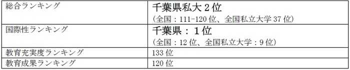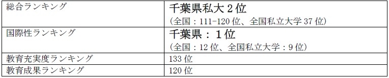 総合ランキング(千葉県私大) 2位 国際性ランキング(千葉県) 6年連続 1位