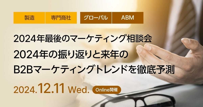 B2B企業向けにマーケティングのコンサルティング・教育・アウトソーシング事業を行う、シンフォニーマーケティング株式会社(本社:東京都千代田区、代表取締役:庭山 一郎)は、当社代表でB2Bマーケティング分野の第一人者である庭山 一郎による毎年恒例の人気企画「2024年最後のマーケティング相談会」を2024年12月11日オンラインにて開催いたします。2023年末に初開催した年に一度の当セミナーは定員100名満席となるお申込みがあり、20を超える多くの質問が寄せられ、大変好評を博しました。