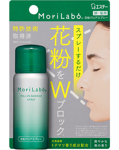「MoriLabo 花粉バリアスプレー」は、スプレーするだけでトドマツの香りが顔や髪に付着したスギ花粉のアレル物質の働きを低減し、スプレー後には空気中のスギ花粉の付着を抑制することで花粉をWブロックします。