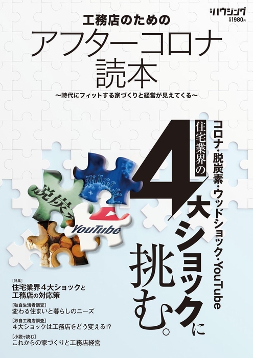 本誌では、時代にフィットする家づくりと工務店経営のあり方、アフターコロナに向けた戦略を紹介。そして、いま住宅業界と工務店に大きなインパクトを与え、避けては通れない