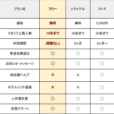 「フリープラン」と他プランとの比較