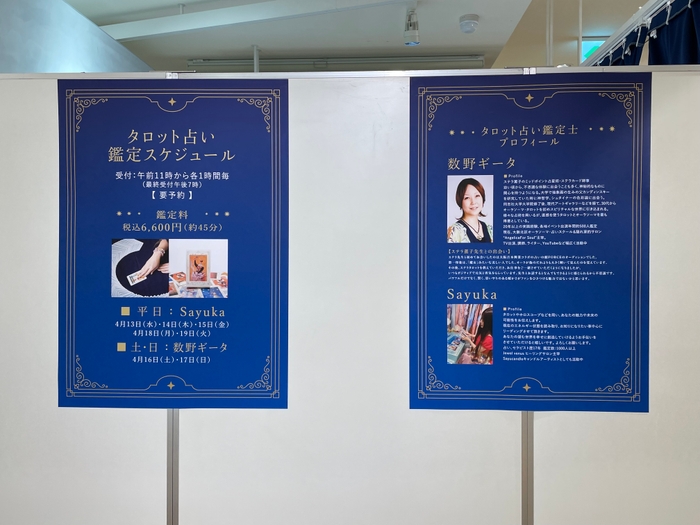 【阪神梅田本店】特別体験「タロット占い」を実施中!4月13日(水)〜19日(火)まで阪神梅田本店8階にて「タロット占い」が体験できます!2022-04-14 19:30株式会社エンプレス8階特設タロット占いコーナー■お問い合わせ・事前予約は阪神梅田本店まで。 電話:06-6345-1201同時開催「宝永たかこのタロットアート展」https://web.hh-online.jp/hanshin/contents/hlc/hlc01/detail/2022/03/post_25.html?utm_medium=storemedia&utm_source=hp&utm_campaign=storepromotion画像・ファイル一覧一括ダウンロード8階特設タロット占いコーナー同時開催「宝永たかこのタロットアート展」