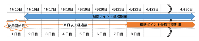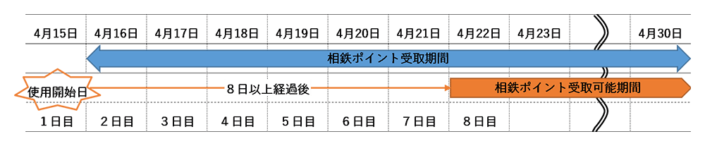 <例>4月15日に使用開始の定期券の場合、4月22日からポイントの受け取りが可能となります。