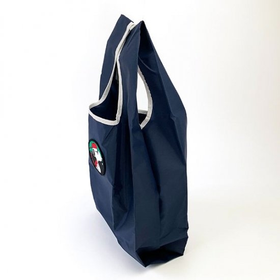 ジョークールのワッペンが効いている、シンプルなエコバッグ。バイオライナーの抗菌防臭生地なので、いつも清潔に使っていただけます。