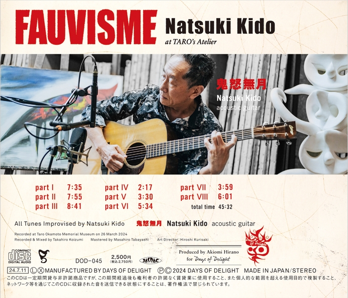 日本ジャズの新たなプラットフォームDays of Delight(ファウンダー&プロデューサー:平野暁臣)は、鬼怒無月(きど なつき)の新譜『フォーヴィスム』を2024年7月11日に発売します。