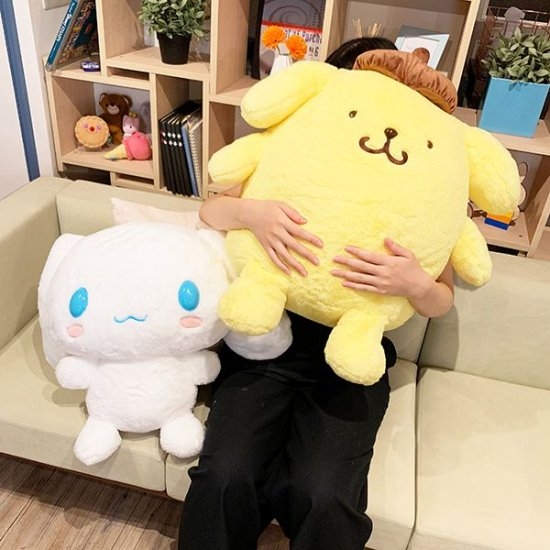 このボリューム感伝わりますか?触り心地がほわほわの、2Lサイズぬいぐるみです。家に帰ってきてこんなに可愛いポムポムプリンがお出迎えしてくれたら、かなり癒されますよね~!