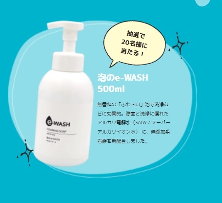 ②e-WASHを使用している画像、または動画をご投稿くださった中から抽選で20名様に「泡のe-WASH 500ml」が当たる!