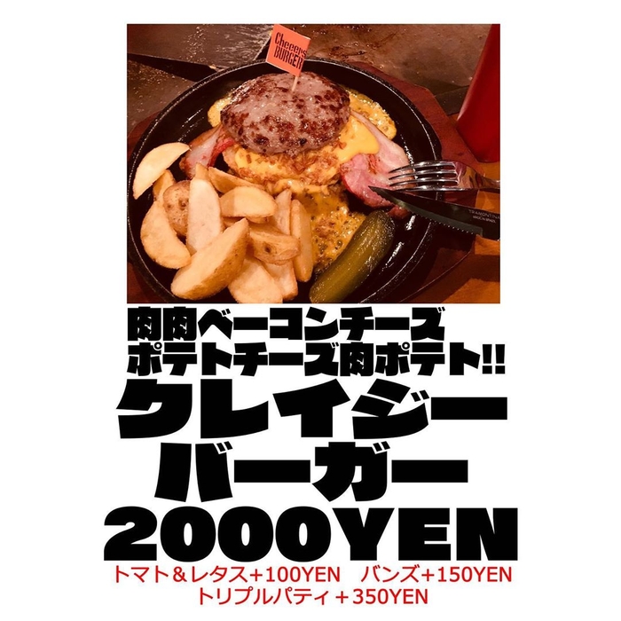 これはハンバーガーなのか?鉄板チーズの海に肉と肉!「チアーズバーガー」がクレイジーバーガーを発売!