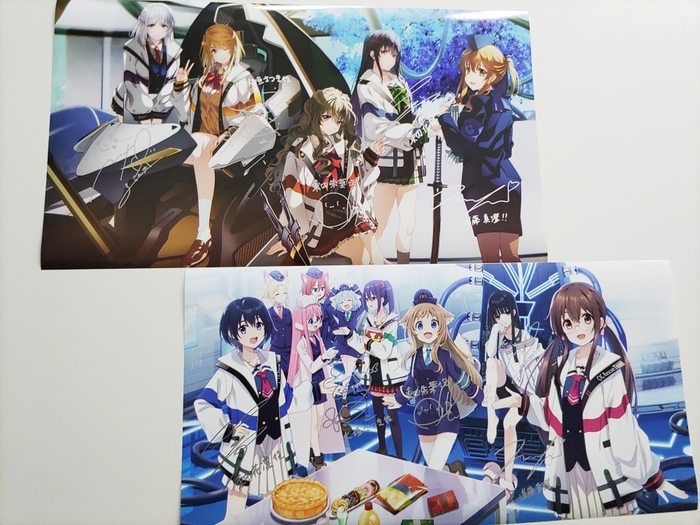 ① 抽選で大垣さつき役 伊藤かな恵 さん・シェリス・マクシモヴァ役 上田麗奈 さんのサイン色紙を2名ずつ、