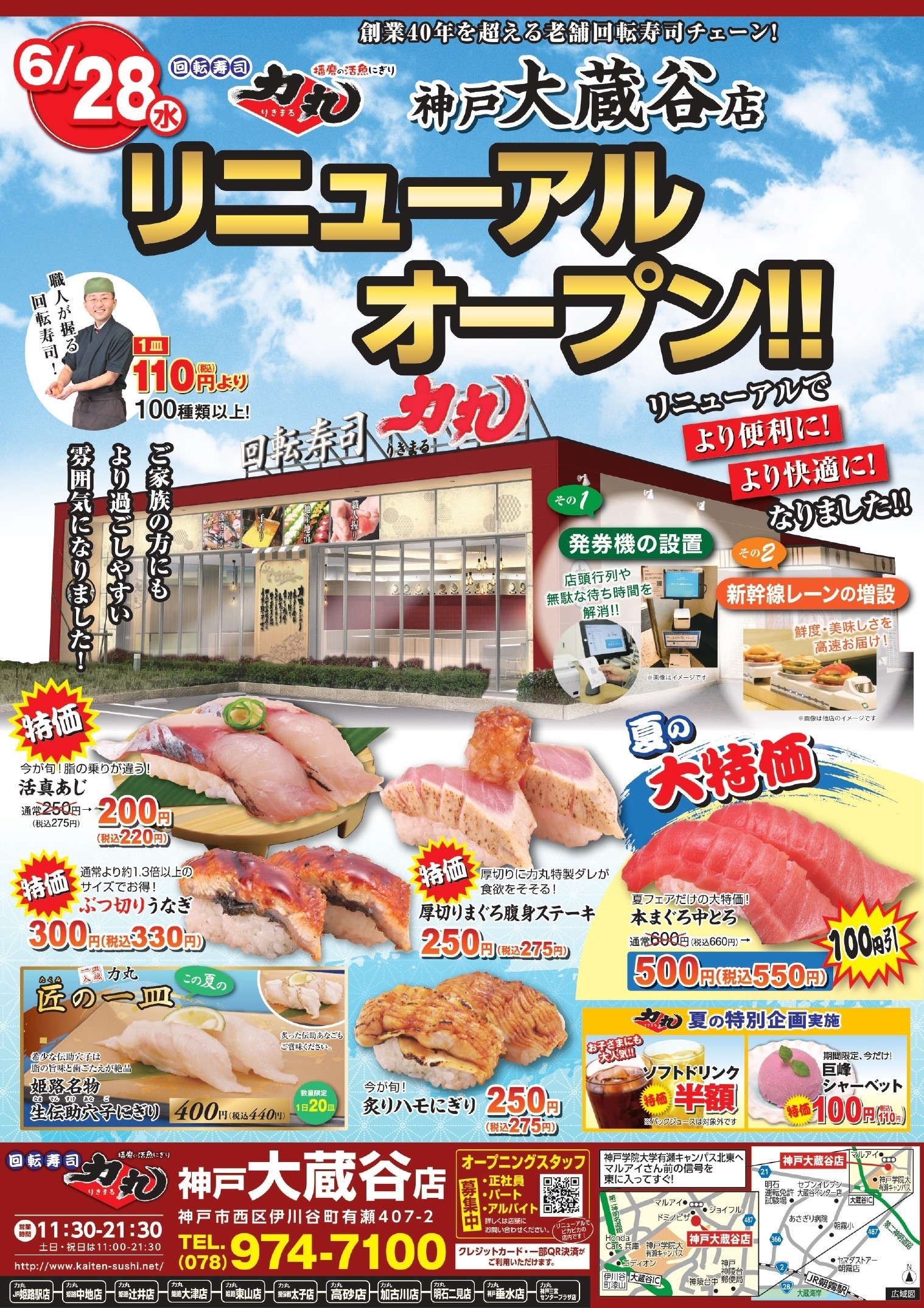 回転寿司力丸大蔵谷店6月28日(水)リニューアルオープン! ~より快適な「職人が握る回転寿司店」へ~