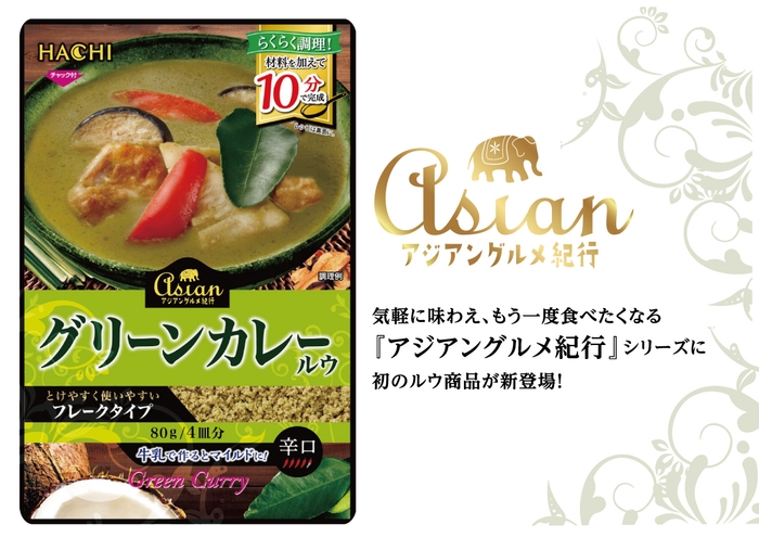 ハチ食品株式会社(大阪府大阪市、代表取締役社長:高橋 慎一、以下 ハチ食品)は、アジアン料理が気軽に味わえるシリーズ『アジアングルメ紀行』の新商品として、「グリーンカレールウ」を2024年3月1日(金)に発売いたします。