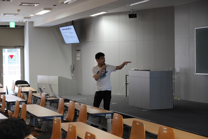 この授業は新商品・新サービスの開発や起業など、自分で何かを実現する事に興味のある学生を対象に開講され、これまで農学部の応用生物化学科が対象だったものを、今年度から農学部3学科のすべての学生が履修できるように拡大。1日の授業日で3コマを連続で実施する集中講座型の選択科目で、2年生を中心に3・4年生も含め55人が履修しました。