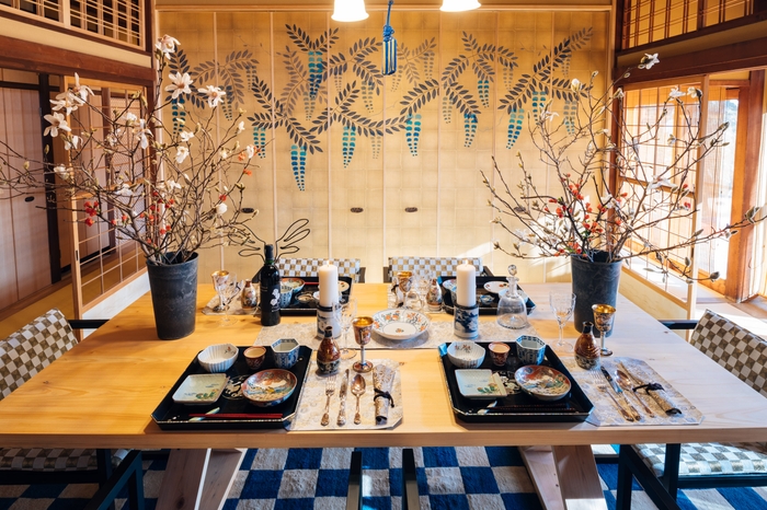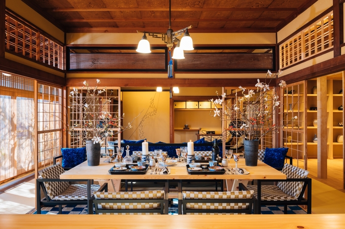 当施設は、築100年という伝統を残しながら快適に過ごせるようにリノベーションが施され、各所に散りばめられた伝統技術が生きる建築意匠や、洗練されたデザインの調度品、アートが特徴的です。 リビング・ダイニングスペースにはインテリアデザイナーこだわりの家具が配置され現代的でありながら和の雰囲気を演出しています。自分の別荘のようにくつろぎながら、美術館のような上質な文化を体験できる宿泊施設となります。