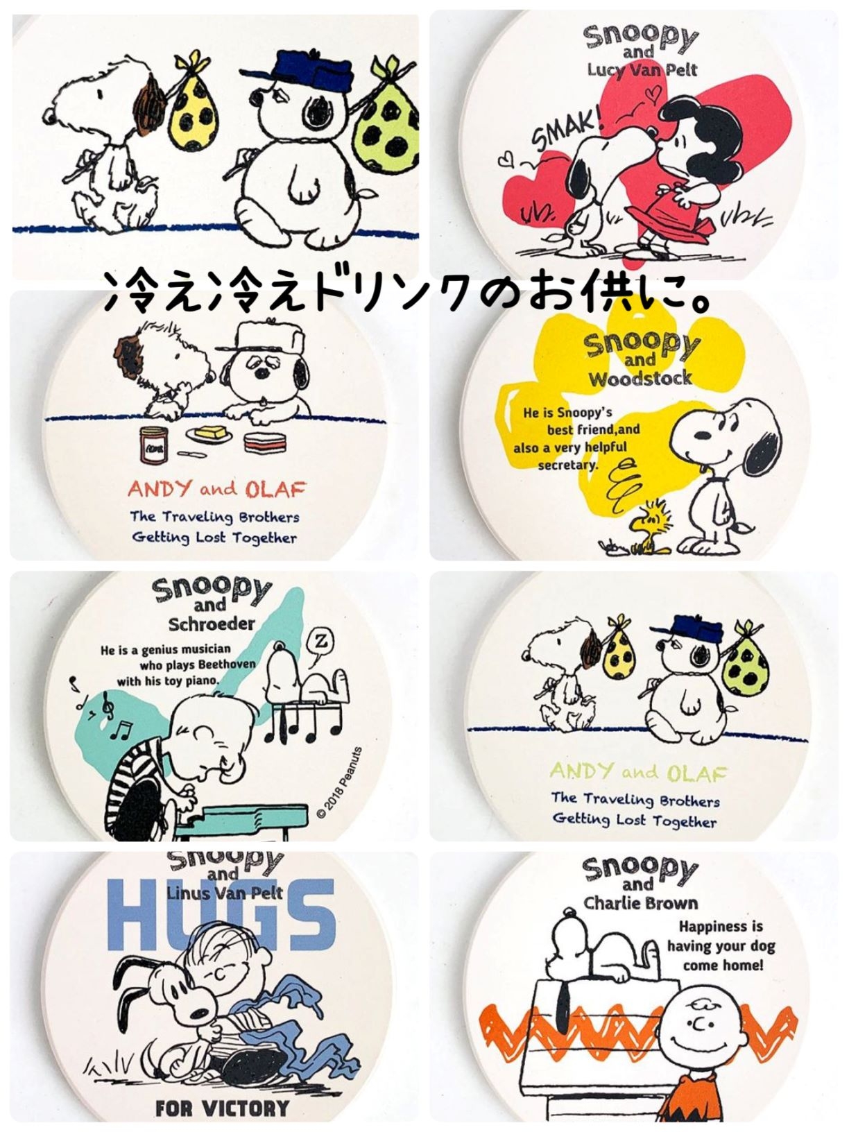 じんわりと汗をかく暑い日が続きますね。そんなときは冷たいドリンクを飲んで身体をクールダウン!冷たいドリンクに欠かせない水滴対策として、役に立つのがスヌーピーの吸水コースター♪スヌーピーとスヌーピーの仲間たちがそれぞれのカラーで登場しました!