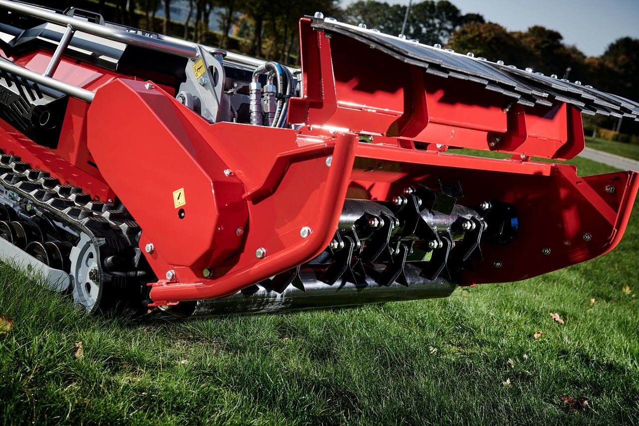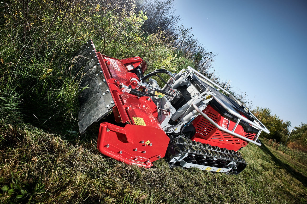 TIMAN「RCシリーズ」は急な斜面で背の高い草や深い茂みを刈る場合の強力なパートナーです。ラジコンで制御できる自走式草刈機、TIMAN「RCシリーズ」が目指したのは安全であるということ。過酷な状況を走破できる堅牢なクローラーとあらゆる雑草を粉砕しながら刈り取るハンマーナイフモアを備えています。そして、多様な安全装置で作業者と機械を守りながら草刈作業を素早く遂行します。