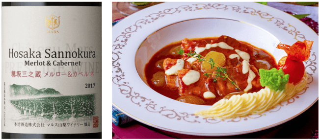 【穂坂三之蔵メルロー&カベルネ X牛バラ肉のやわらか煮込み 干しブドウソース 】