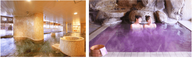 また、贅沢に天然温泉にワイン成分の入浴剤を入れた、香り華やかな「甲州ワイン風呂」も人気。