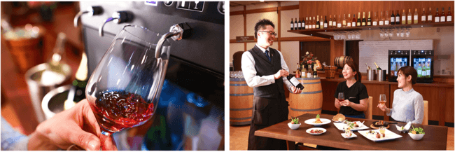 ワインは酸化防止機能の付いた専用サーバーで管理され、ボタンを押すと適量が自動的にグラスに注がれます。