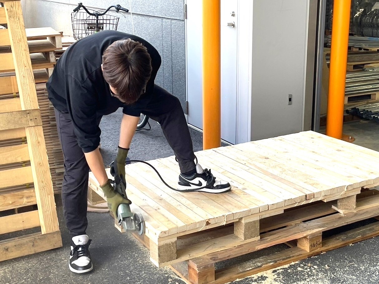 学生主導、大量廃棄の輸送パレットを自然に還す