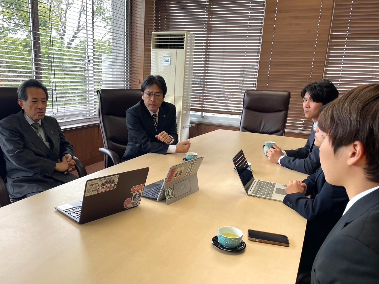 HEROESが活動を開始したのは2024年4月。物流倉庫がある古賀市との連携が決まった他、金澤バイオ研究所と技術提供の協力を検討しています。学生4名が古賀市長を訪問し、自社で加工したチップを雑草対策として今年度内に小学校に無償提供することが決まりました。チップは微生物の力で土に還るため、子供たちと一緒に撒くことで環境問題に関心を持つ機会になればと、市長も快諾。来年度以降は他の小・中学校にも広げて継続していく予定です。
