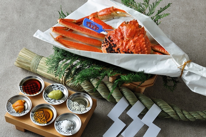 「界 出雲」「界 加賀」では、「明けの贅沢 ~おひとりさま美食~」を楽しめます。産地や品質の保証を示すタグが付き、大皿でもはみでるほどの「タグ付きの活蟹」。爪、脚、だき身のそれぞれがもつ旨味、甘さ、食感などを、一杯まるごと味わい尽くせる「ひとり蟹会席」を提案します。