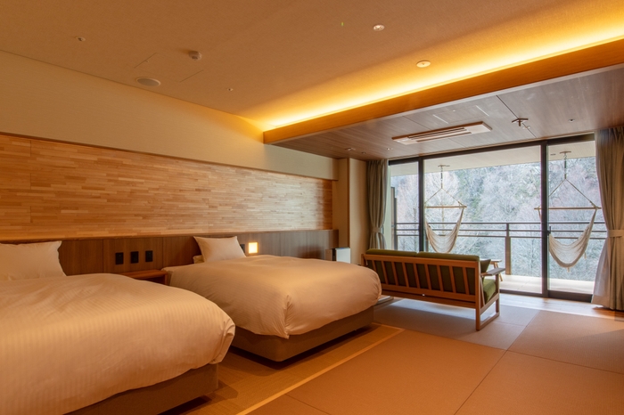 【仙台・作並温泉ゆづくしSalon⼀の坊】東北初!チェアハンモック付新客室誕⽣「【⾥⼭フロント】ハンモックテラス・プレミアツイン」〜暮らすように、滞在をする〜 | NEWSCAST