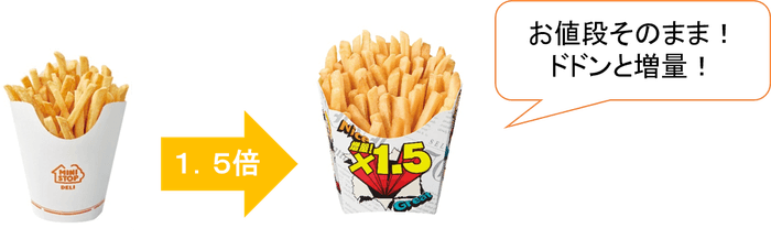 ミニストップは、「X(エックス)フライドポテト」の販売20周年を記念したセールの第2弾として、「フレンチフライポテト」の、1.5倍増量セールを行います。幅広い世代に人気の、「フレンチフライポテト」を、いつもの1.5倍、お楽しみいただけます。