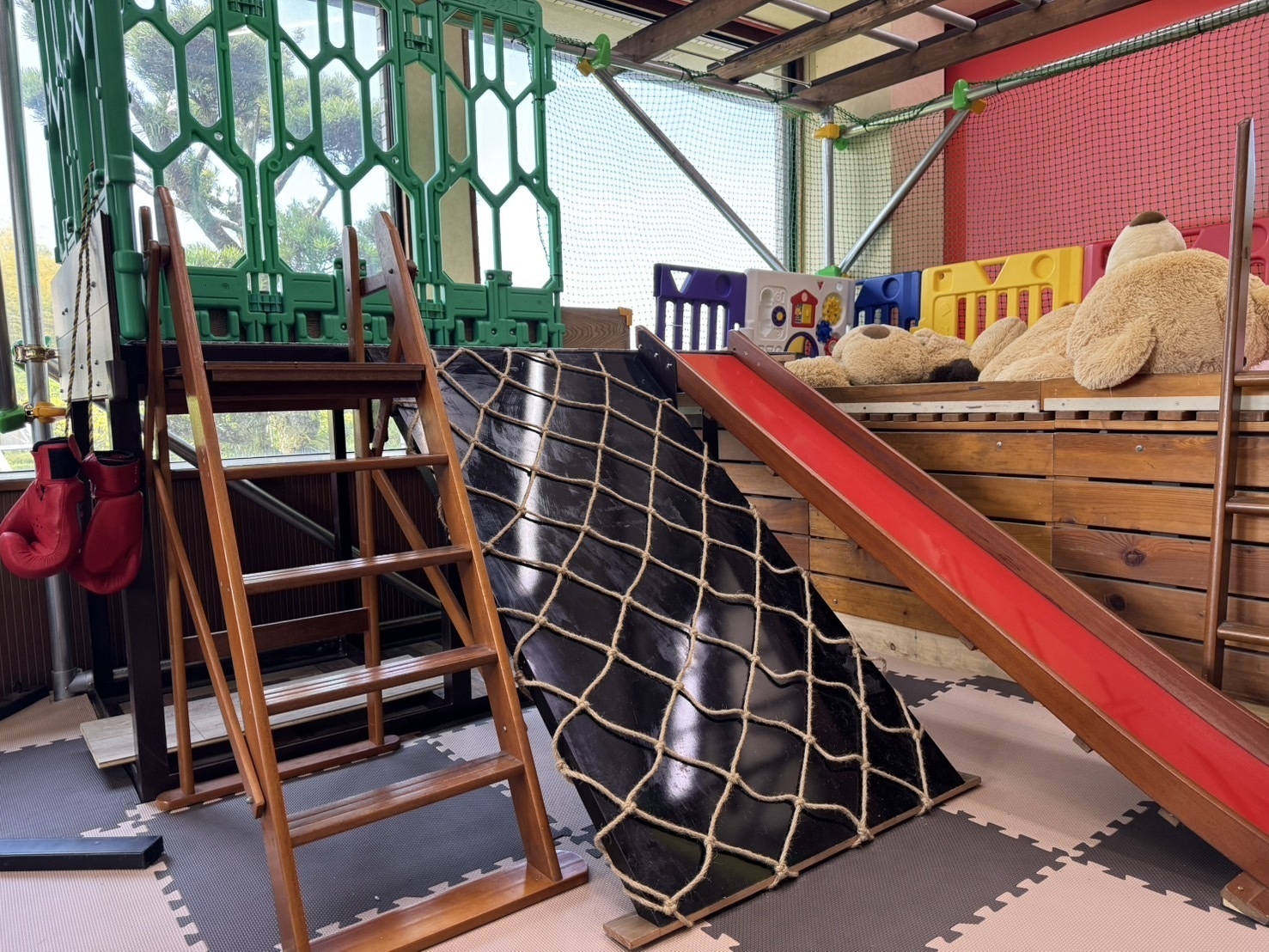 その他ターザンやトランポリンなどアグレッシブに体を動かすものもあれば、滑り台やジャングルジムなど小さい子が遊べるものもあり、よちよち歩ける2歳ごろから小学6年生までの子供たちが楽しめるキッズスポーツランドです。