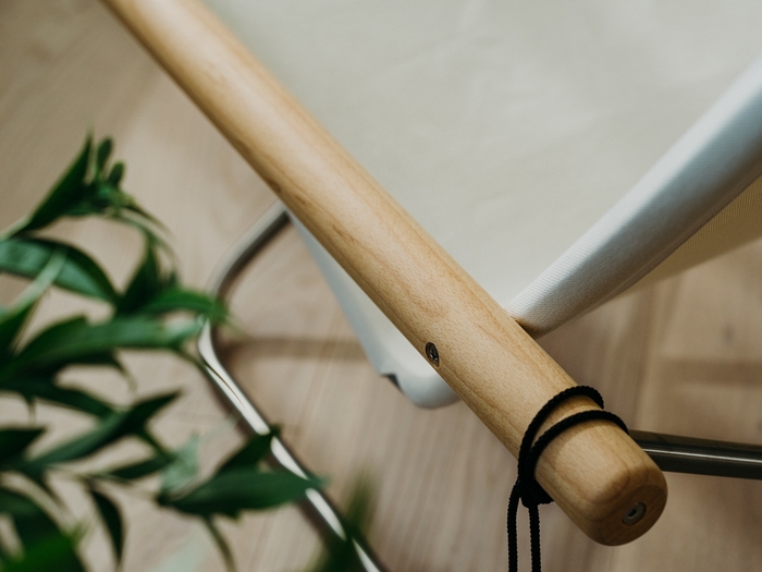 情報や選択肢が溢れる日々ですが、その一瞬でも「ありのまま、自然のまま」の自分に向き合う時間をニーチェアエックスに座りながら過ごしてもらえたら。そんな想いで、自然のままの木の表情を活かした肘かけに合わせて、心を鎮める柔らかな新色のシート生地もご用意いたしました。