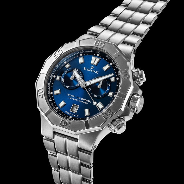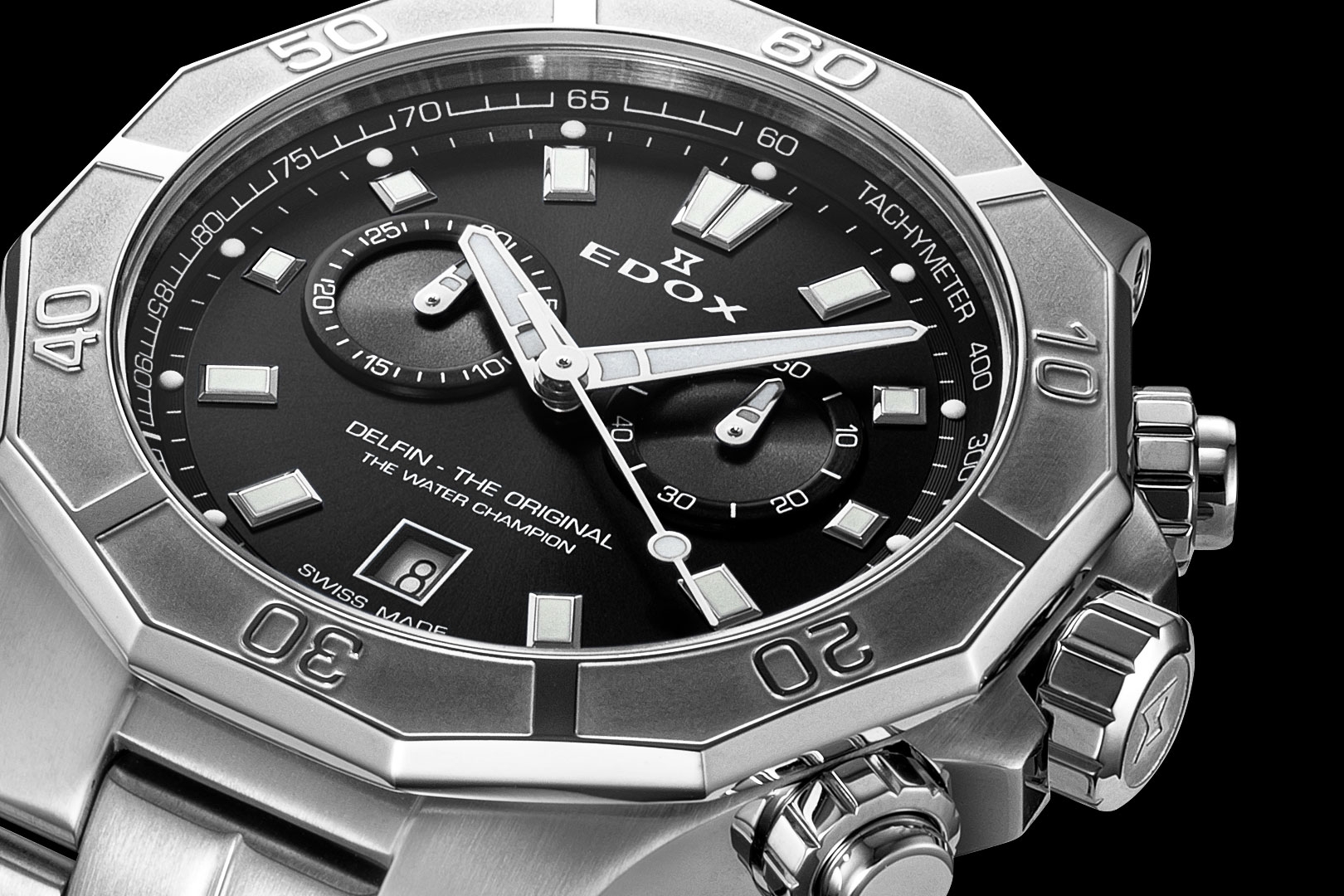 『デルフィン』は、エドックスの主要コレクションのなかで最も長い歴史を持つ、ブランドの原点ともいえる象徴的なコレクションです。1961年に、ねじ込みなしで高い防水性能を維持できる「ダブル・Oリング」という画期的なリューズシステムの特許を取得しました。この革新的な発明により、200m防水を実現した防水時計『デルフィン』が誕生しました。これをきっかけに、エドックスは"The Water Champion"というスローガンを掲げ、信頼性の高い防水時計のブランドとして広く認知されるようになったのです。