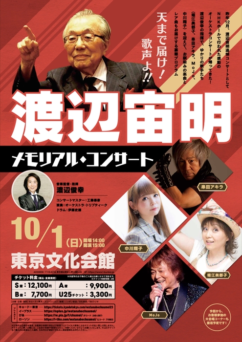 2022年6月23日、96歳で永眠した渡辺宙明の功績を称え、残した名曲の数々を豪華出演者たちの歌声と共に届ける渡辺宙明追悼コンサートが同年12月に東京・NHKホールで開催。今年は「渡辺宙明 メモリアル・コンサート」として開催されることとなった。
