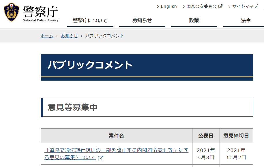 2021年9⽉3⽇、警察庁は、来年4⽉以降、安全運転管理者選任事業所においては、安全運転管理者に対して運転者へのアルコール検知器を⽤いた飲酒検査を義務づける改正案を公表しました。