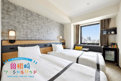 ホテル エルシエント大阪では「星谷モモ」「MAKO」「kaho hosokawa」の3名の作品のシールアートを各部屋の窓に貼り、アーティストビューとして街の眺めを楽しんでいただくスタンダードツイン3室を、期間限定で販売いたします。ホテル以外では露天神社(通称:お初天神)の鳥居や協力店舗の看板など、7か所にアートを展示いたします。街とアートの融合で未来の“曽根崎”を創造するこのイベントは、曽根崎エリアの地域活性化プロジェクト「曽根崎ソーシャルグッド」の第2弾。アートをきっかけに地域が一体となり、訪れる人を魅了する唯一無二の街「曽根崎」を目指します。