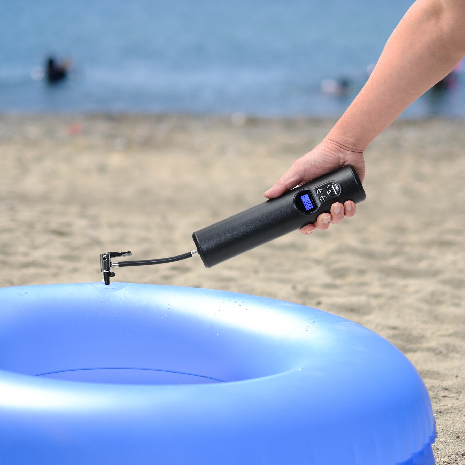 軽量&コンパクト、暗い夜でもLEDライトで明るく作業ができる電動空気入れポンプは、シンプル操作で誰でも簡単に空気入れができます。手動空気入れポンプで感じていた「時間がかかる、体力がいる、面倒」などの作業がボタンひとつで解決するアイテムです。