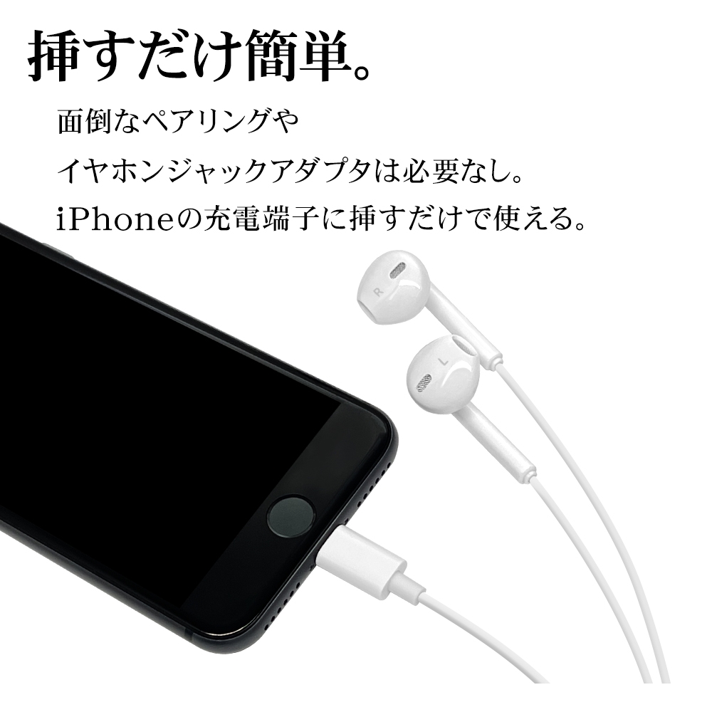 Lightning端子が搭載されたiPhoneやiPad、iPod用のステレオイヤホンです。