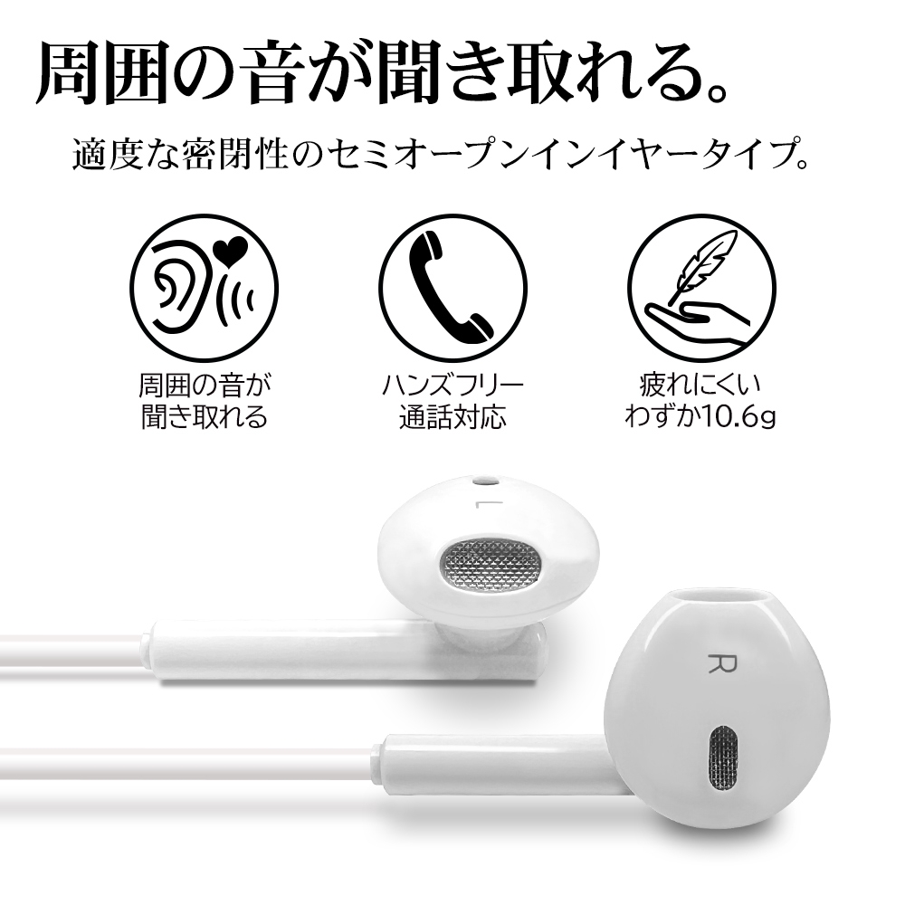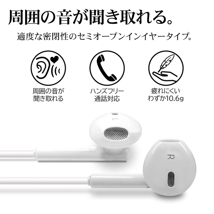 イヤホン部は、圧迫感が少なく自然な音質のセミオープンインイヤータイプを採用しています。
