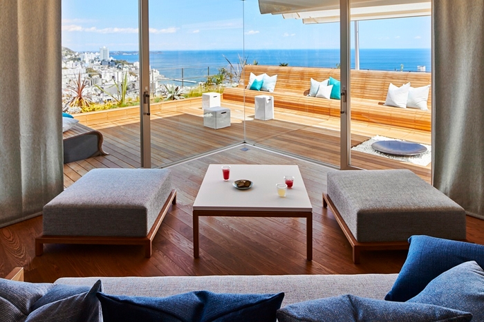 全室オーシャンビューの絶景が魅力のリゾートホテルです。熱海の名物「花火」と海の「青」を基調にデザインされた館内から、熱海の海と街を一望できます。豊富なアクティビティを体験することはもちろん、リラックスできる Books&Cafe や森、温泉でゆっくりと過ごすことも可能です。首都圏から新幹線で 1 時間以内の熱海で、いつ誰と来ても素敵な休日を過ごすことができます。