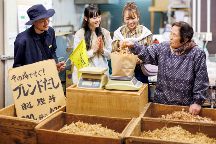当施設では、「笑い」と「おせっかい」を採り入れた大阪らしいおもてなしと、洗練された空間と上質なサービスが織りなす体験で大阪のディープな魅力を提供しています。大阪の魅力をもっと知ってほしいという思いで「なにわええとこ、ええもんBOX」セットを用意しました。朝市が人気の「大阪木津卸売市場」のかつお節や、大阪で生まれた伝統的染色技法「注染(ちゅうせん)」で染めた手ぬぐい、ミックスジュース発祥の店「千成屋珈琲」のミックスジューステイクアウト券など、大阪の「ええとこ」発見につながる「ええもん」が入っている特別なお土産BOXです。