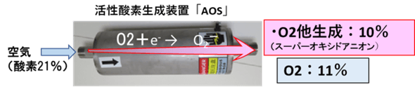 活性酸素生成装置「AOS」は50w(給気ファン込み)で、3000L/min(最大)の空気を処理します。