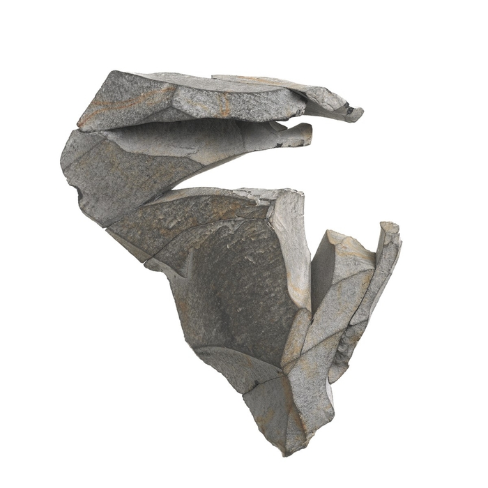 槍の先端に付けていたと考えられるナイフ形石器などの道具類のほか、道具を作る過程で生じた欠片(剥片や砕片といいます)が出土しています。法華寺南遺跡最大の特徴は、当時の石器を作る技術を読み取ることができる点です。出土した石器同士を繋ぎ合わせることで、どのような手順で石器を割っていたかがわかります。調べた結果、サヌカイトという石材をあらかじめ運びやすい大きさに加工したうえで遺跡内に持ちこんでいたこと、それを素材として更に小さく打ち割って、様々な道具を作ったことがわかりました【画像2】。