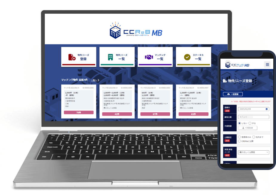 CRE (企業不動産)戦略支援等を行うククレブ・アドバイザーズ株式会社(本社:東京都千代田区、代表取締役:宮寺之裕)は2023年9月1日より、事業用不動産マッチングシステムCCReB MB(以下「マッチングボックス」)の販売を開始します。