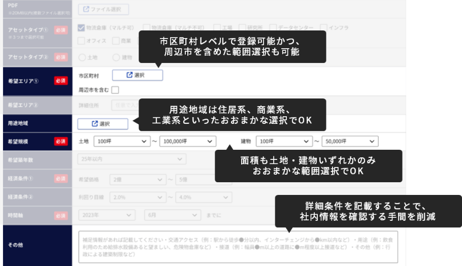 ※社外情報とマッチングをかける場合、物件の基本情報は開示されるが、物件を特定出来る詳細情報は非表示となります。